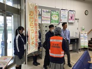 2月17日(火)、本校生徒17名を対象に、「声かけ訓練「かけらっしょ」」を実施しました。この訓練は、「ながみね探究」の福祉班の授業の一環として、本校生徒が認知症の高齢者を演じながら、大洗町内の地域の方々に訓練を通して、認知症の高齢者への声かけの大切さについて呼びかけました。大洗町役場の福祉課の職員の方々、地域包括支援センターの職員の方々からご指導をいただきながら、大洗郵便局、常陽銀行大洗支店、TAIRAYA大洗店、大洗駅などで、訓練を実施しました。