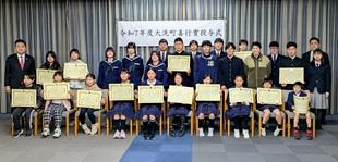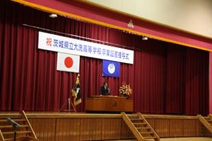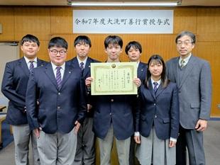 令和8年3月3日(火) トヨペットスマイルホール大洗 大会議室において、令和7年度 大洗町 善行賞授与式が行われました。普通科2,3年生が高等学校家庭クラブの活動で行った防災食のローリングストックの活動を通して、高校生の地域参加および地域の方への防災意識の向上に努めたことが評価され受賞しました。